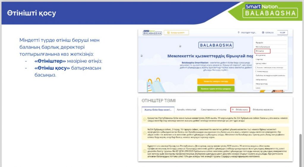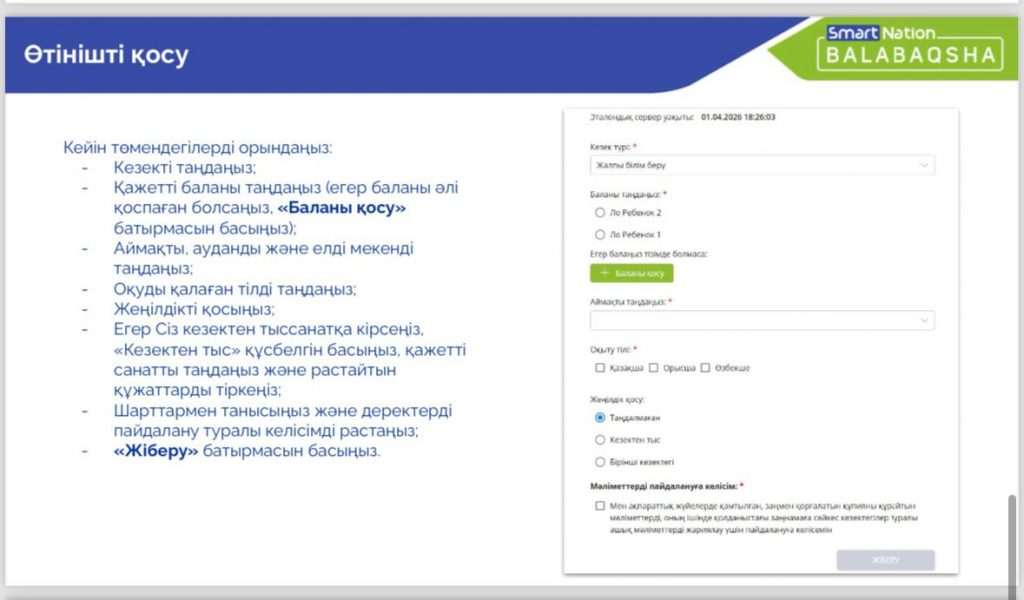 Кұрметті ата-аналар!Ақсу қаласында «Мектепке дейінгі ұйымдарға жіберу үшін мектепке дейінгі (6 жасқа дейін) жастағы балаларды кезекке қою» мемлекеттік қызмет керсету бойынша автоматтандырылған жүйенің жұмысы қайта басталғаның хабарлаймыз.Балаларды балабақшага кезекке қою жане қабылдау Balabaqsha.snation.kz. сайт арқылы жүзеге асырылады. Қосымша ақпаратты келесі телефон арқылы алуға болады: ( 8 (71837) 23-0-20 немесе Аксу каласы Айналайын сәбилер бакшасының кабинетіне өтініш жасауға болады.Жүйемен жұмыс істеу бойынша нұсқаулықтар Айналайын сәбилер бақшасыны https://ainalaiyn.bilimaksu.edu.kz/wp-admin/post.php?post=524&action=edit ресми сайтында және инстаграм ainalaiyn_s_b_agsu парақшасында орналастырылған.
